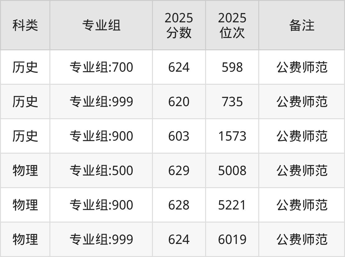 物理+化学:专业组:500(公费师范)最低629分(位次5008名)。