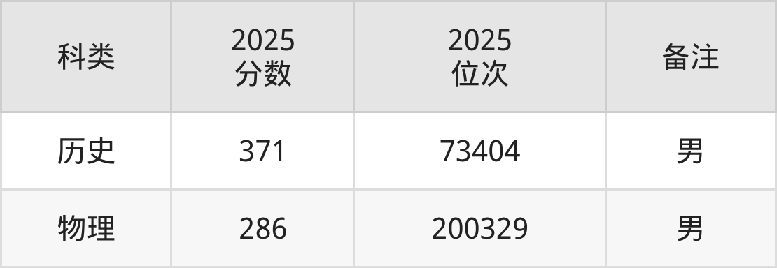 物理+不限:男生366分、位次172925名。