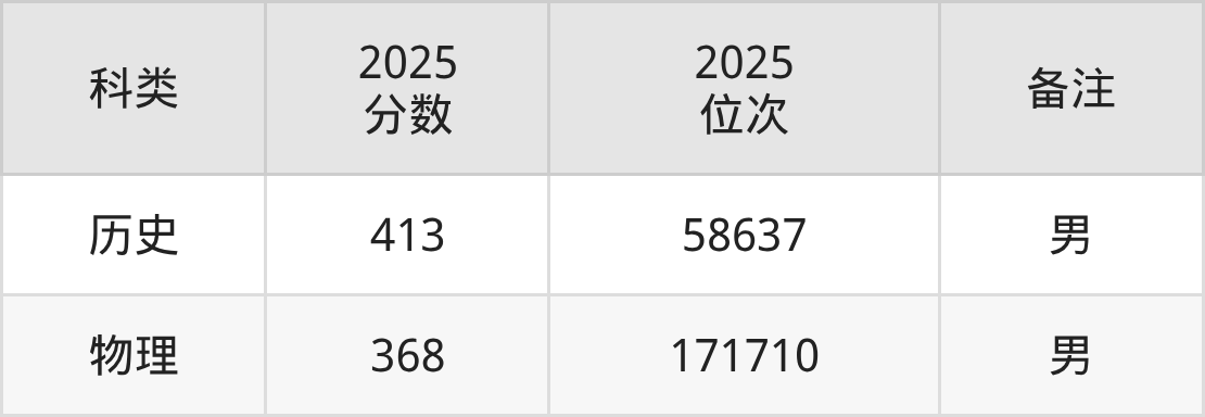 历史+不限:男生413分(位次58637名)。