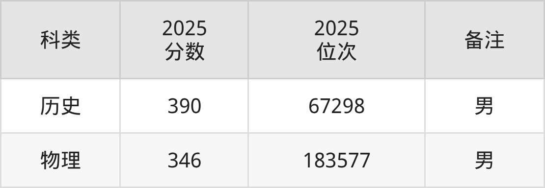 物理+不限:男生346分、位次183577名。