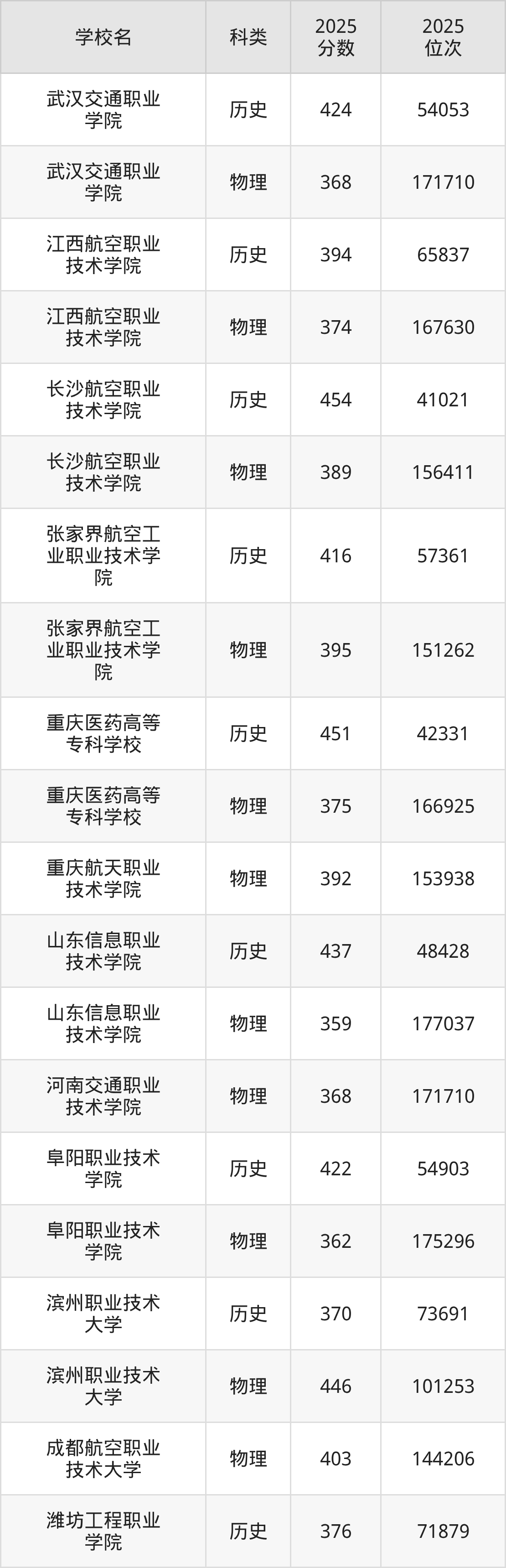 | 长沙航空职业技术学院 | - | - |