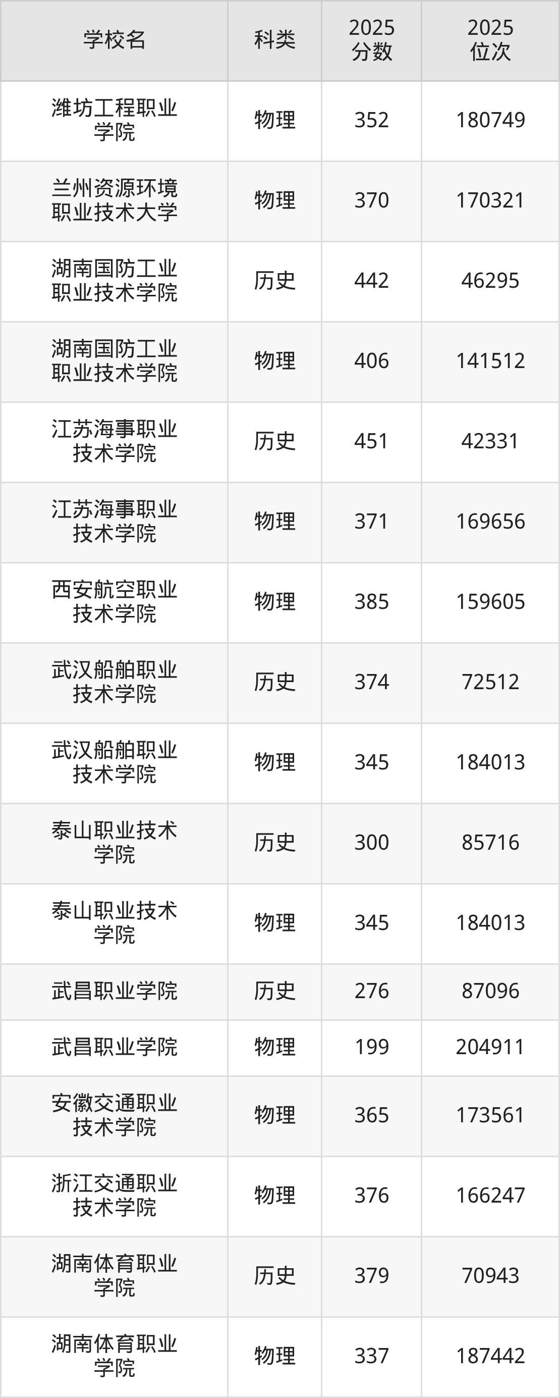 从性别角度来看,湖北交通职业技术学院2025年在贵州录取分数线男生最低需346分;从选科角度来看,湖北交通职业技术学院2025年物理类录取最低分为346分、历史类录取最低分为390分。2026届物理类位次在183577名及以内、历史类位次在67298名及以内报考被录取的概率最大。