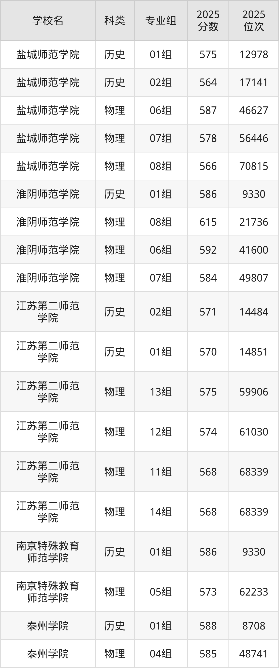 本文整理2025年江苏地方公费师范生录取分数线及位次表,供2026届意向考生参考!