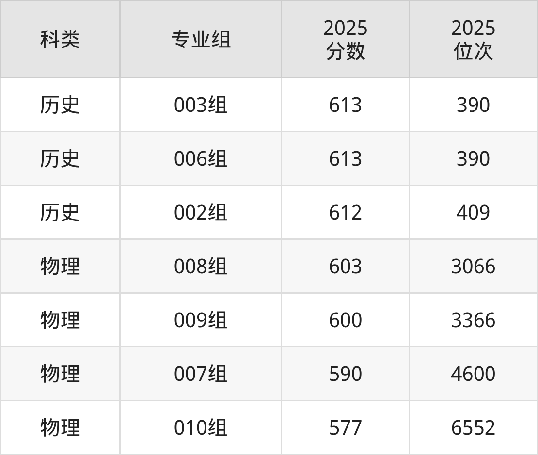 从选科角度来看,华中师范大学2025年物理类录取最低分为577分、历史类录取最低分为612分。2026届物理类位次在6552名及以内、历史类位次在409名及以内报考被录取的概率最大。