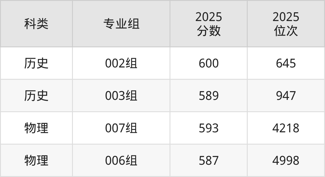 从选科角度来看,华东师范大学2025年物理类录取最低分为592分、历史类录取最低分为611分。2026届物理类位次在4335名及以内、历史类位次在423名及以内报考被录取的概率最大。