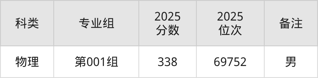 物理+不限:男生338分、位次69752名。
