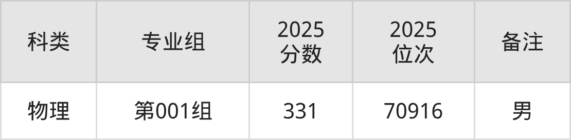 物理+不限:男生331分(位次70916名)。