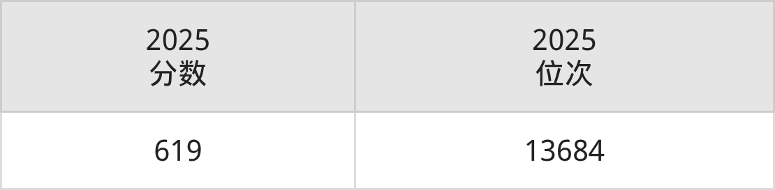 物理:最低619分(位次13684名)。