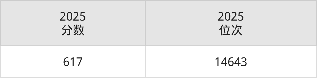 物理+化学:最低617分(位次14643名)。