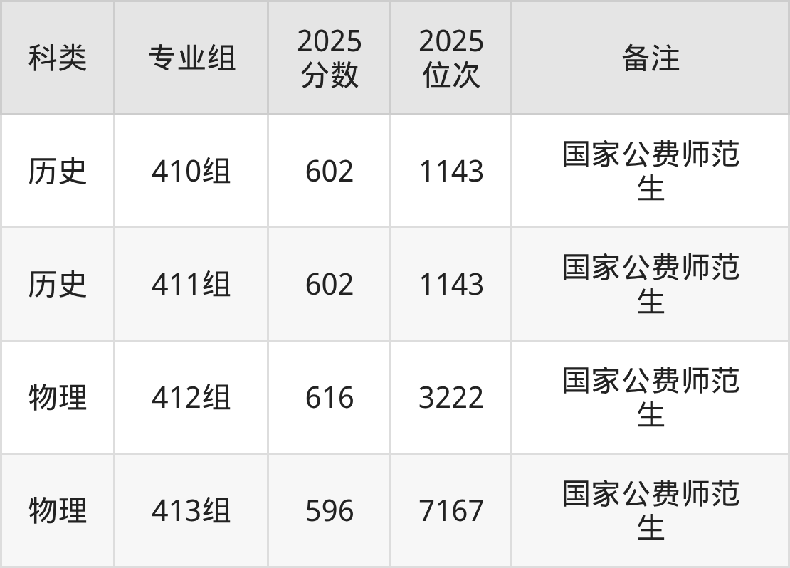历史+不限:410组(国家公费师范生)602分(位次1143名)。