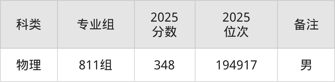 物理+不限:男生348分、位次194917名。