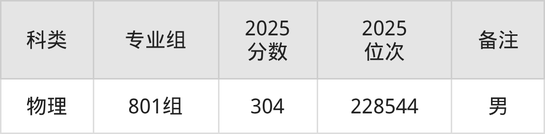 物理+不限:男生304分、位次228544名。