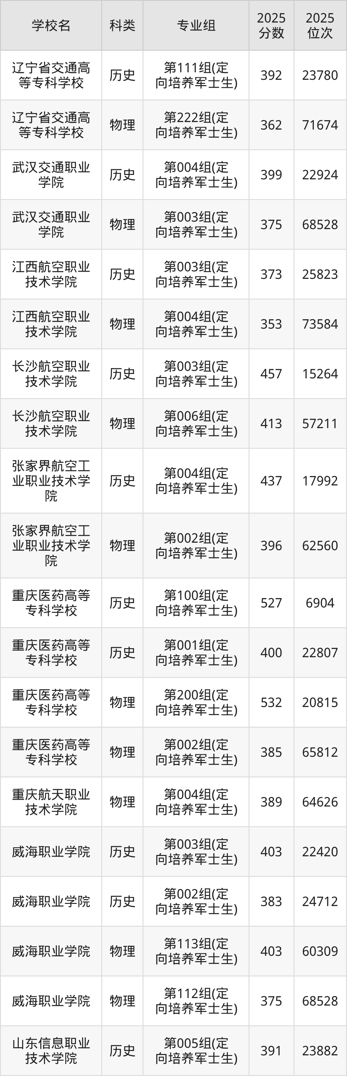 一、2025年内蒙古定向士官学校录取分数线及位次表