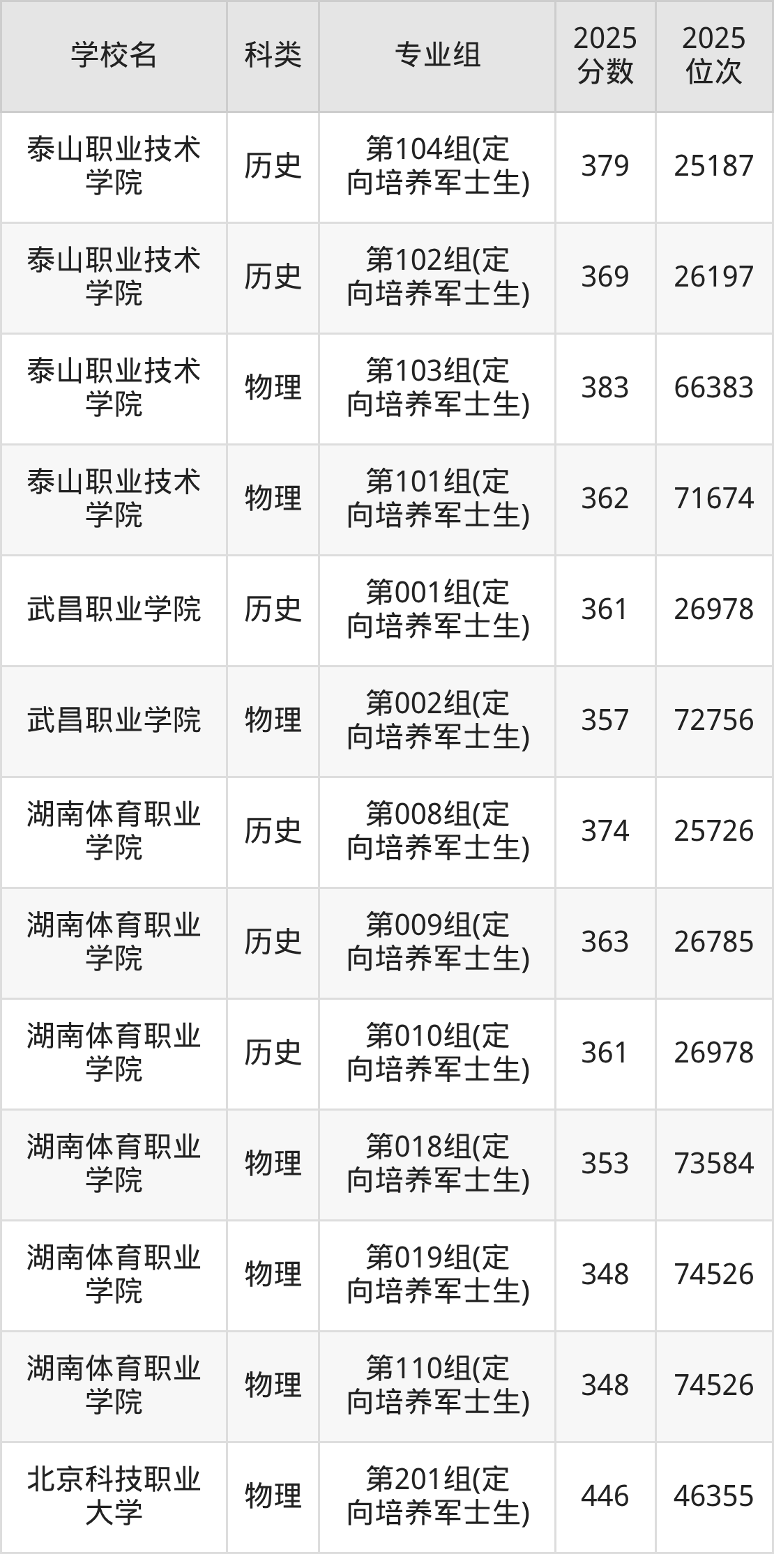 物理+不限:第333组(定向培养军士生)最低310分(位次80030名);第444组(定向培养军士生)最低356分(位次72980名)。