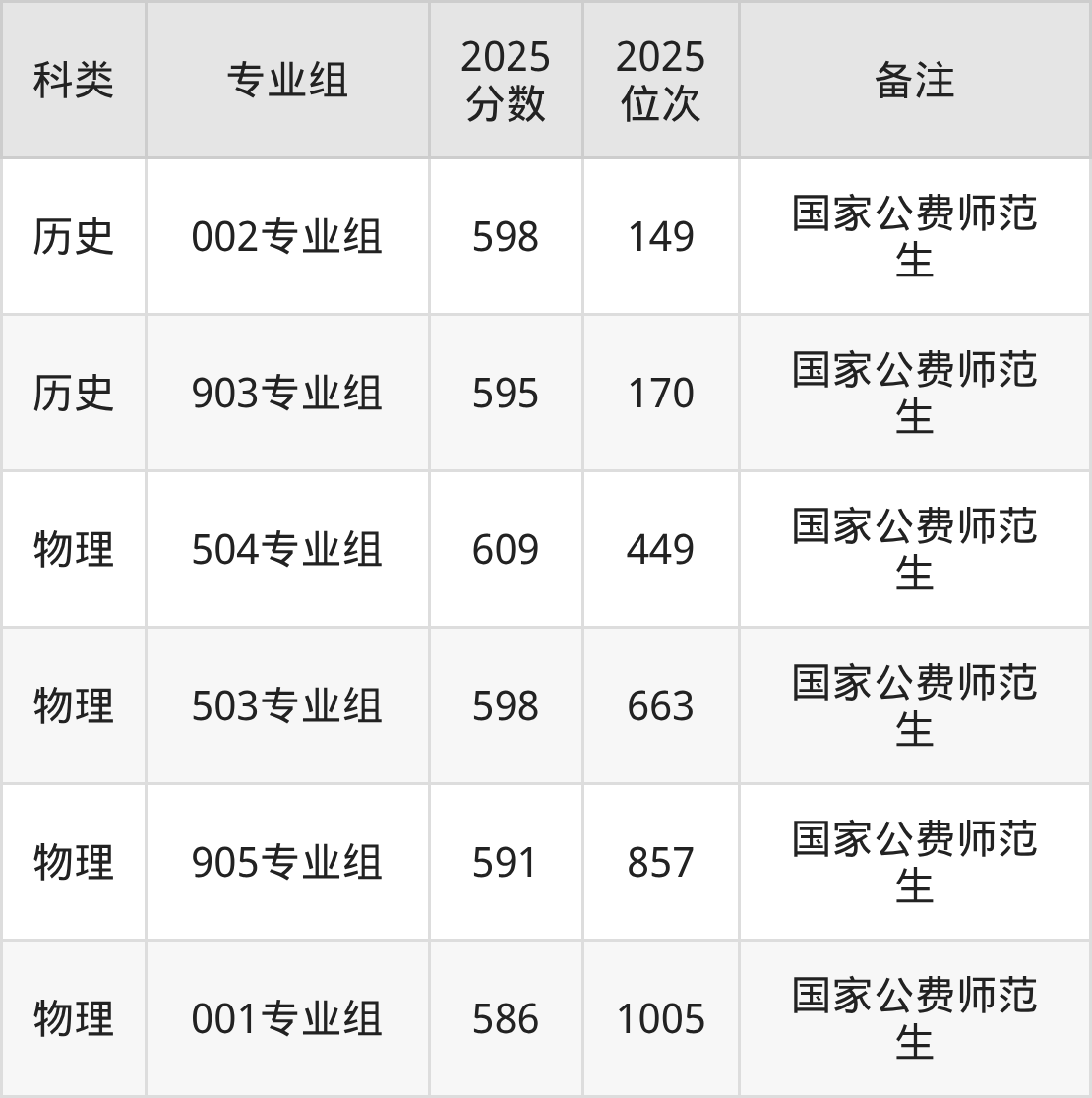 历史+不限:002专业组(国家公费师范生)最低598分(位次149名)。