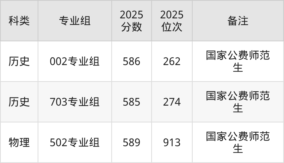 历史+不限:002专业组(国家公费师范生)586分(位次262名)。