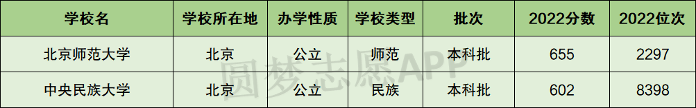 一、中央民族大学和北京师范大学分数线
