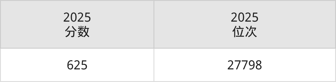 化学:最低625分、位次27798名。