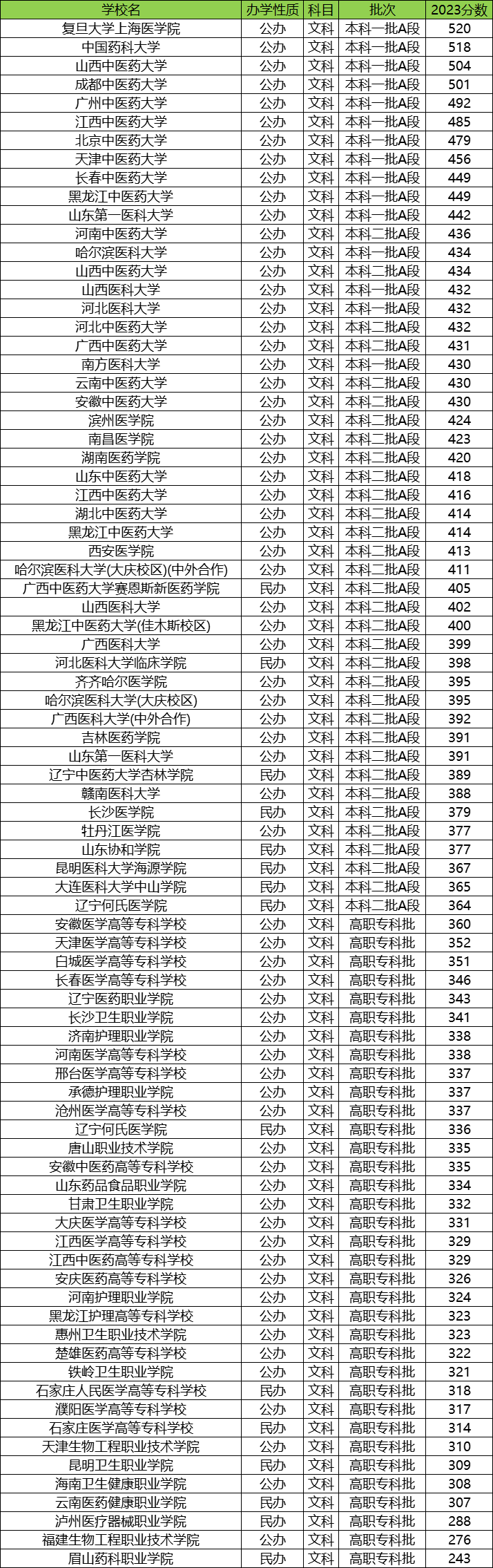 在黑龙江文科考生中分数区间为520分-243分。分数最低的医科大学有眉山药科职业学院,最低分为243。一本医科大学中南方医科大学分数最低,430分以上就有机会,二本医科大学中辽宁何氏医学院最低只要364分。