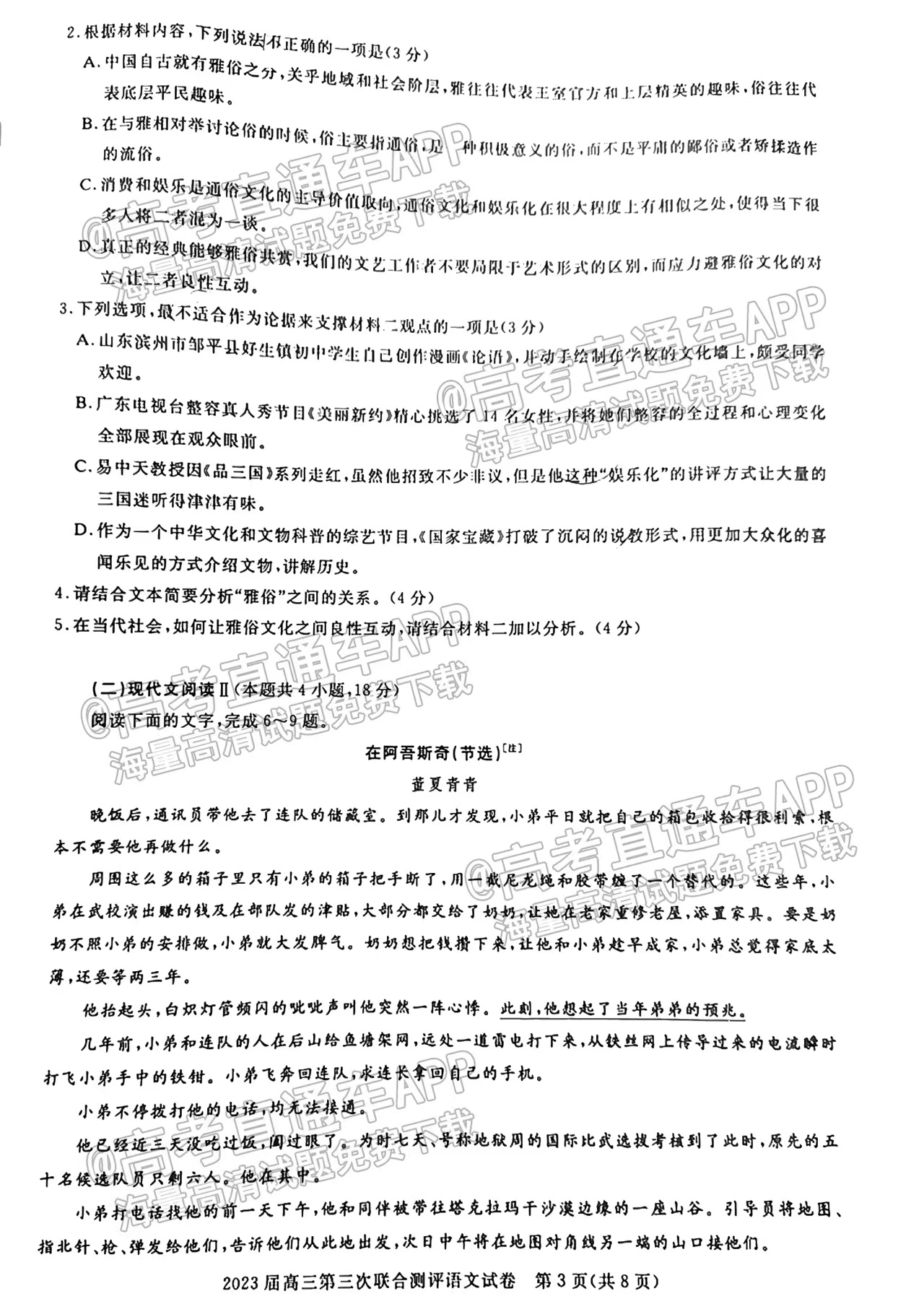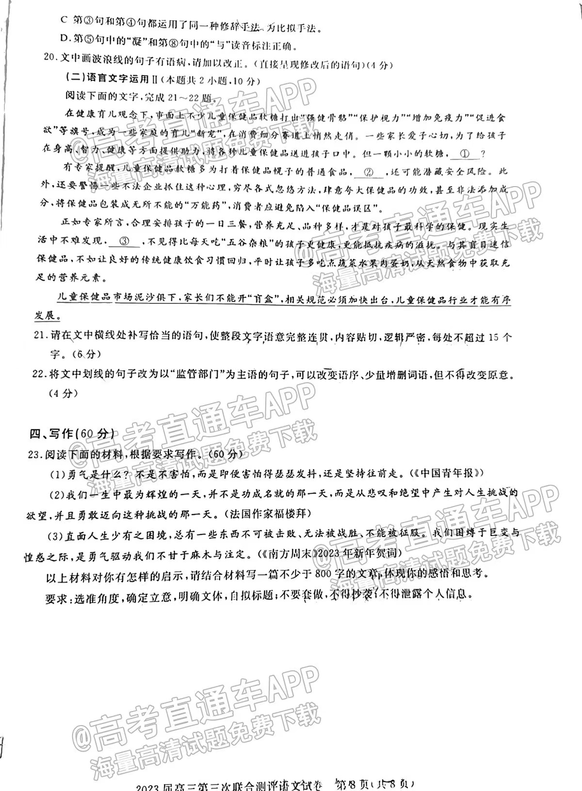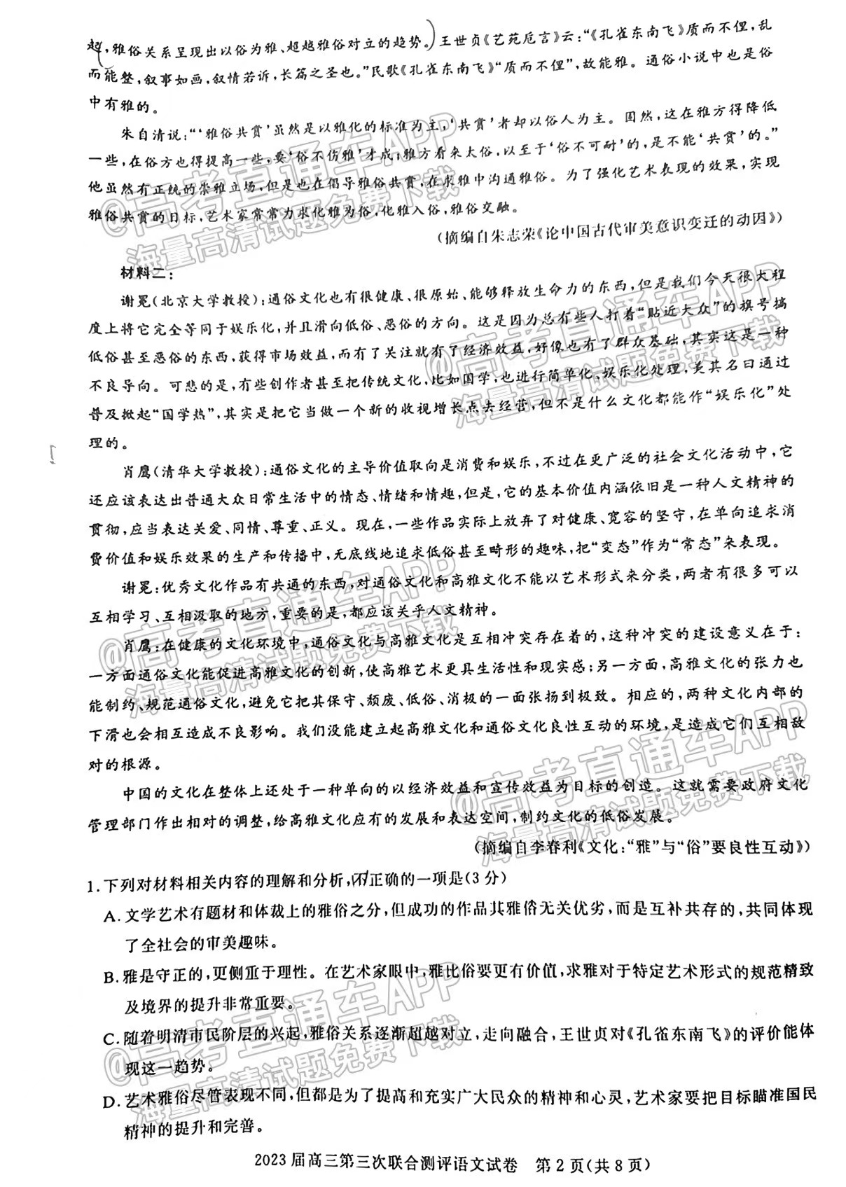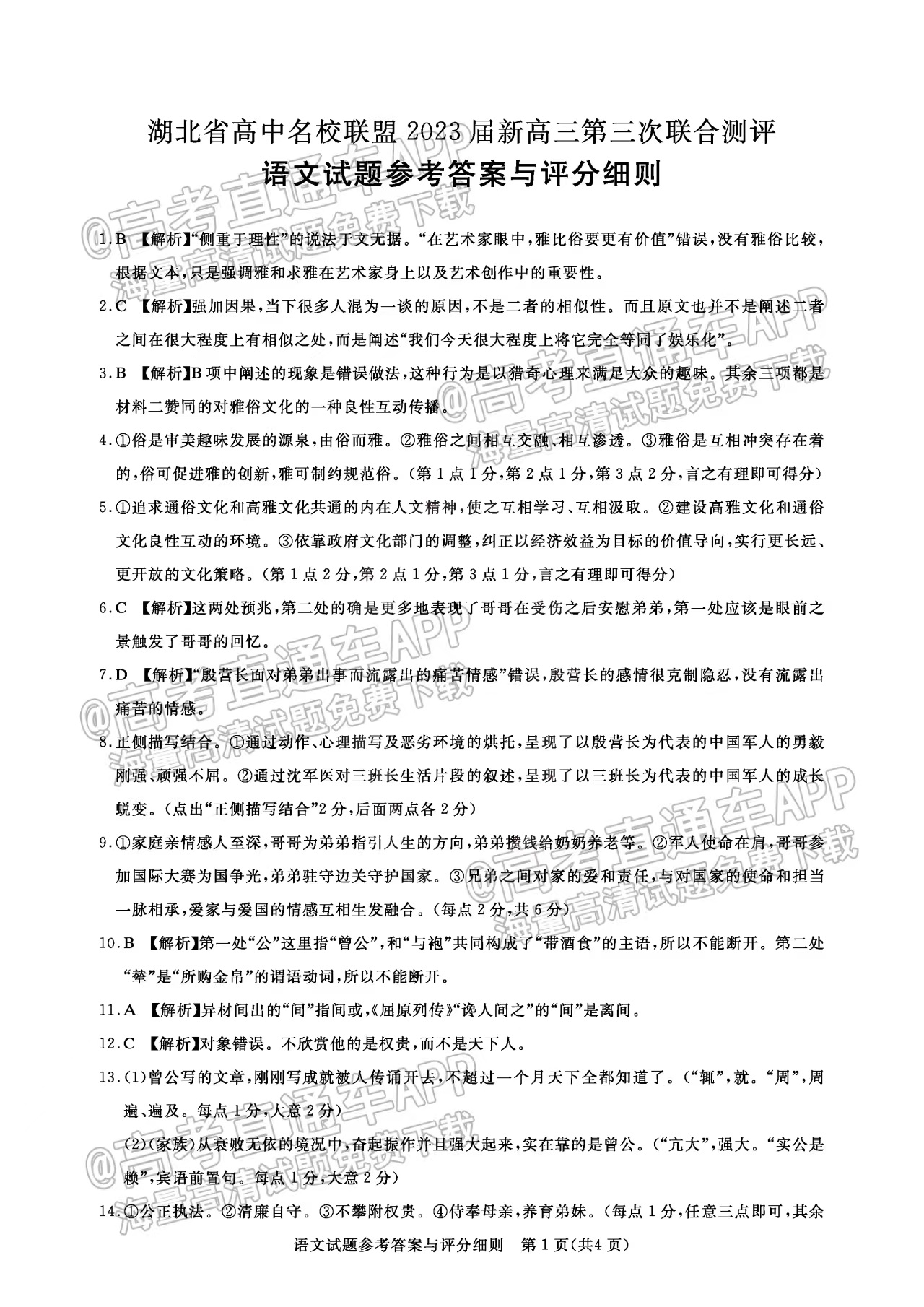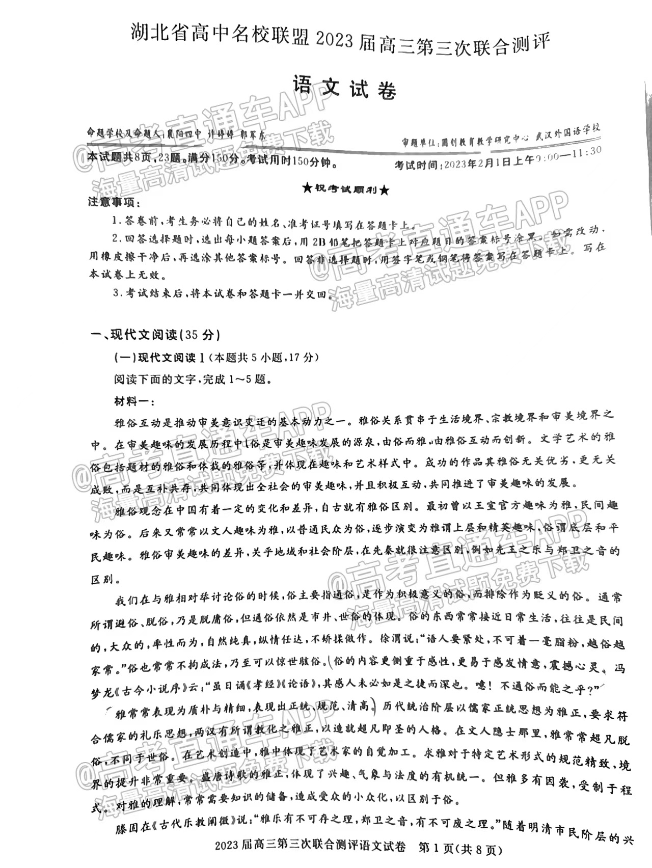 一、湖北圆创联盟高三2月联考2023答案及试卷汇总语文
