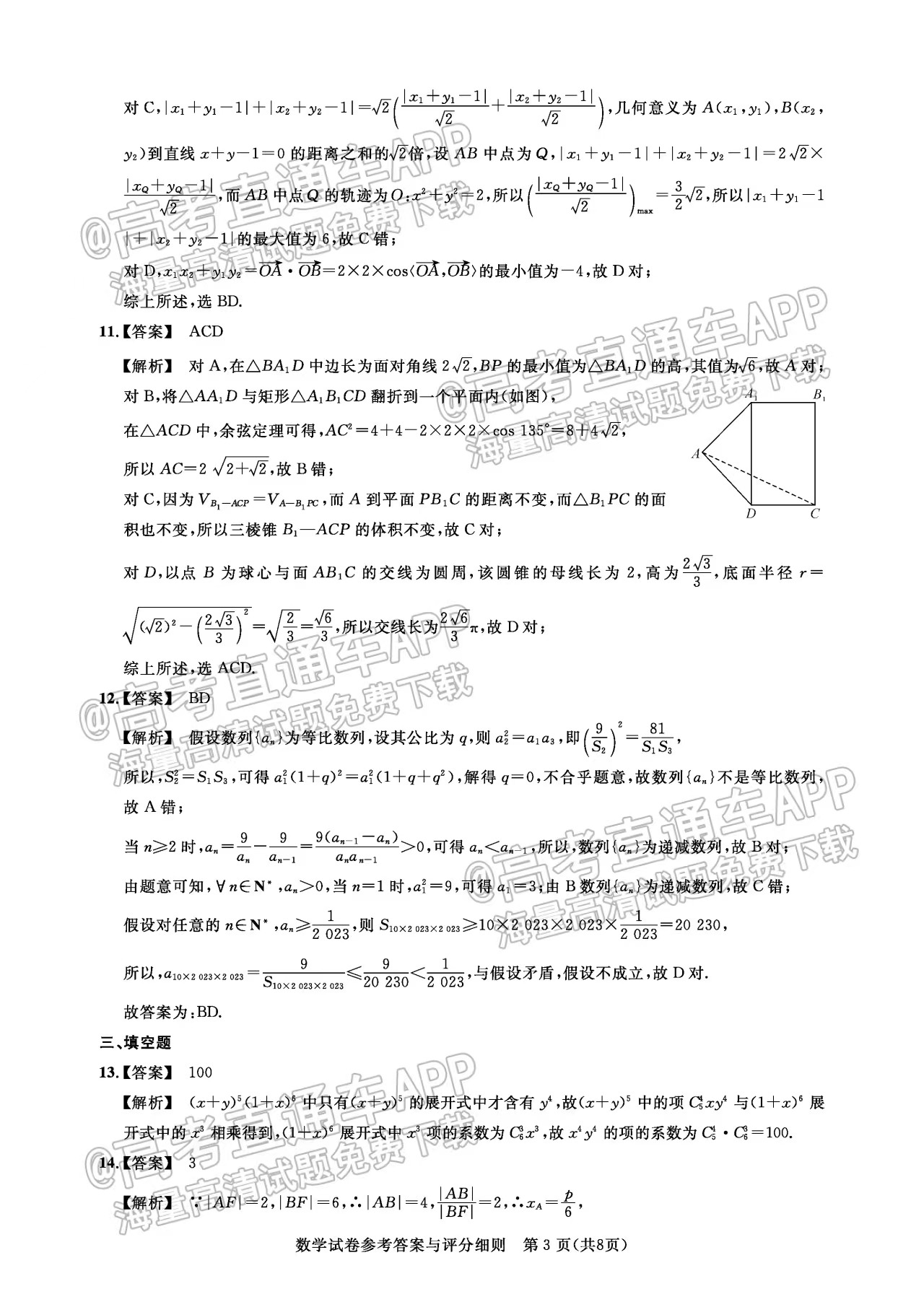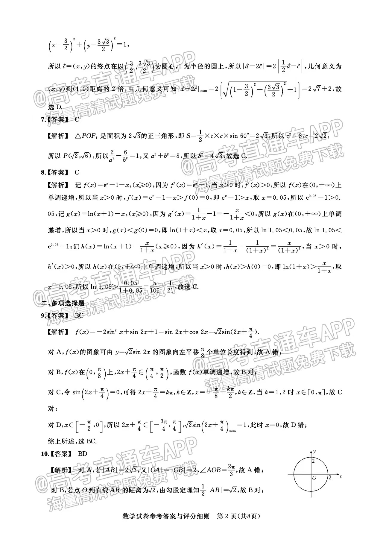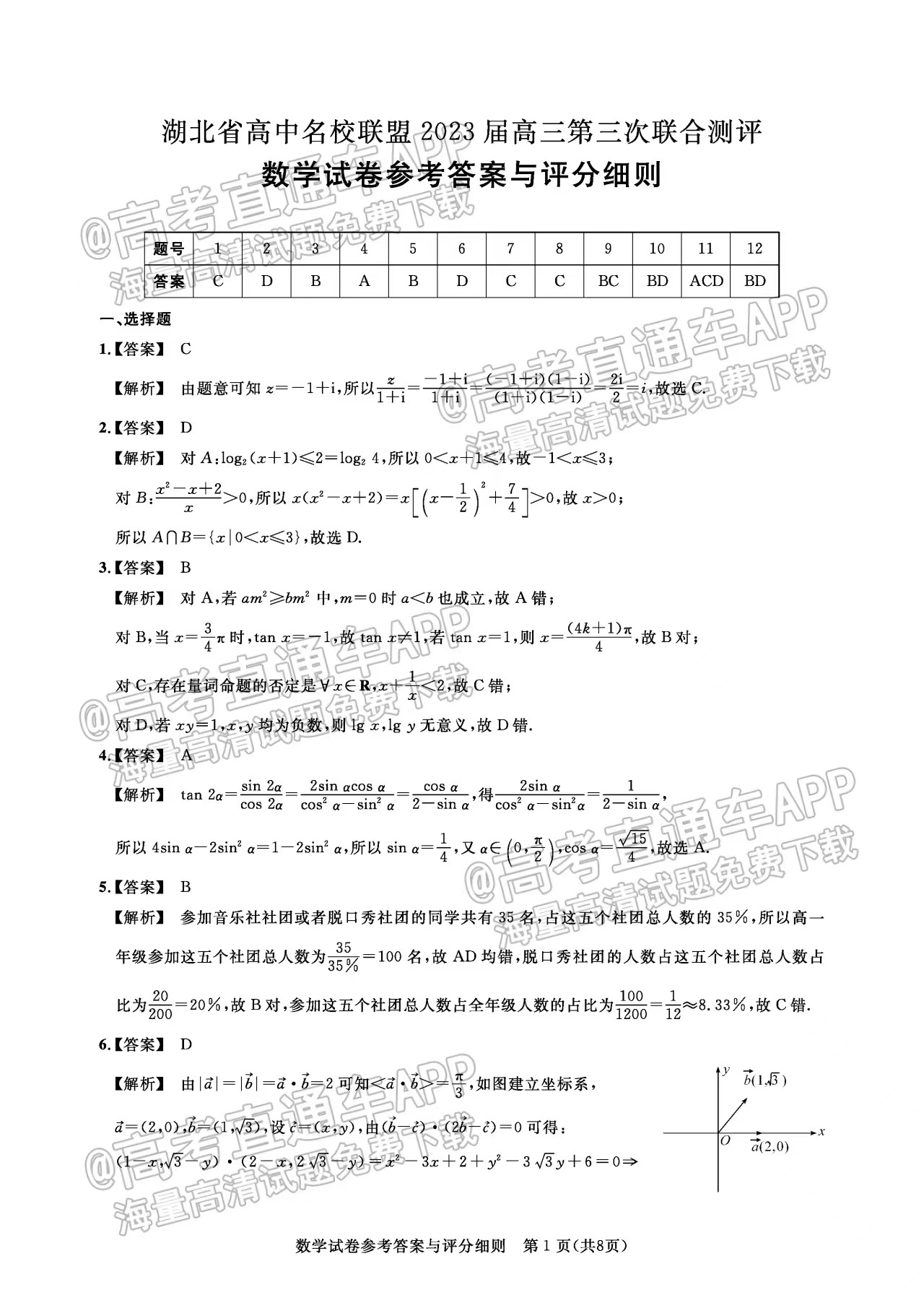 二、湖北圆创联盟高三2月联考2023答案及试卷汇总数学