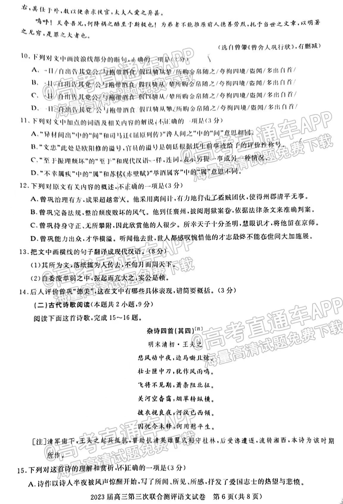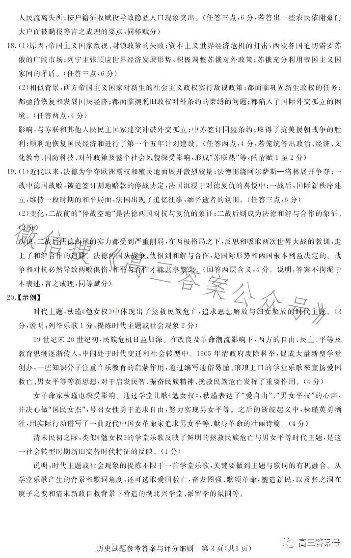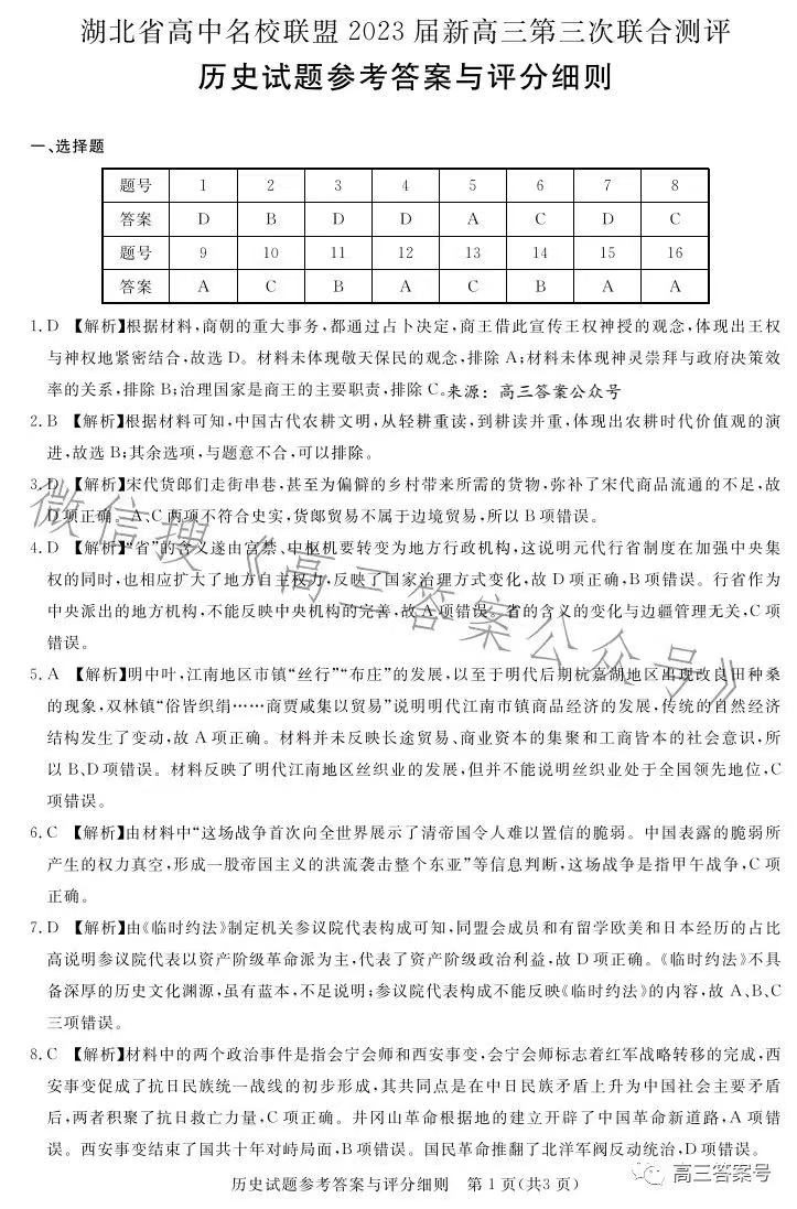 八、湖北圆创联盟高三2月联考2023答案及试卷汇总历史