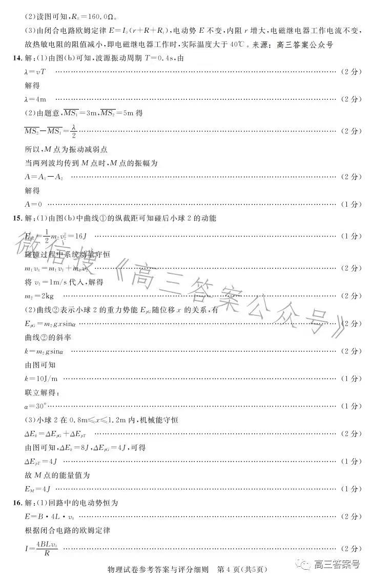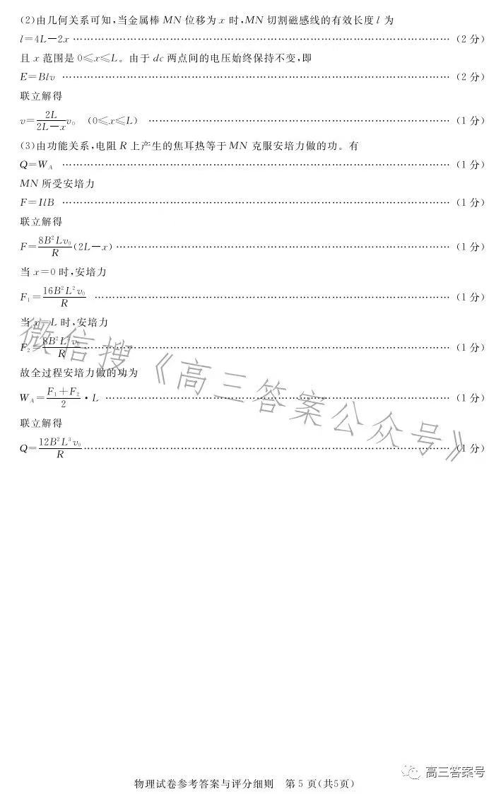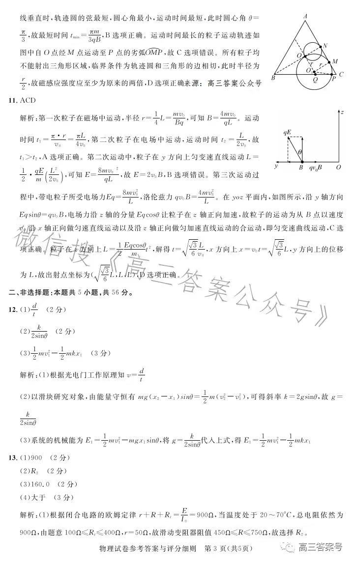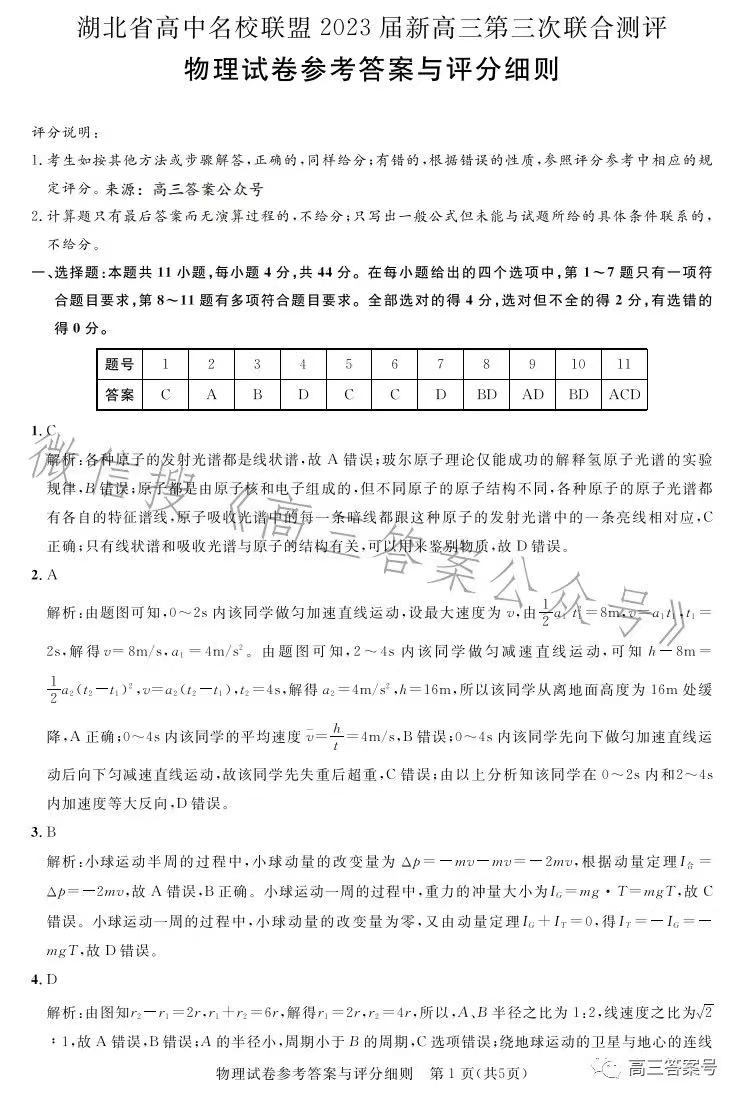四、湖北圆创联盟高三2月联考2023答案及试卷汇总物理