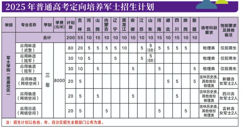 招生地区:面向吉林、河北、山西、辽宁、内蒙古、黑龙江、安徽、江苏、山东、河南、湖北、四川、陕西、新疆招生。