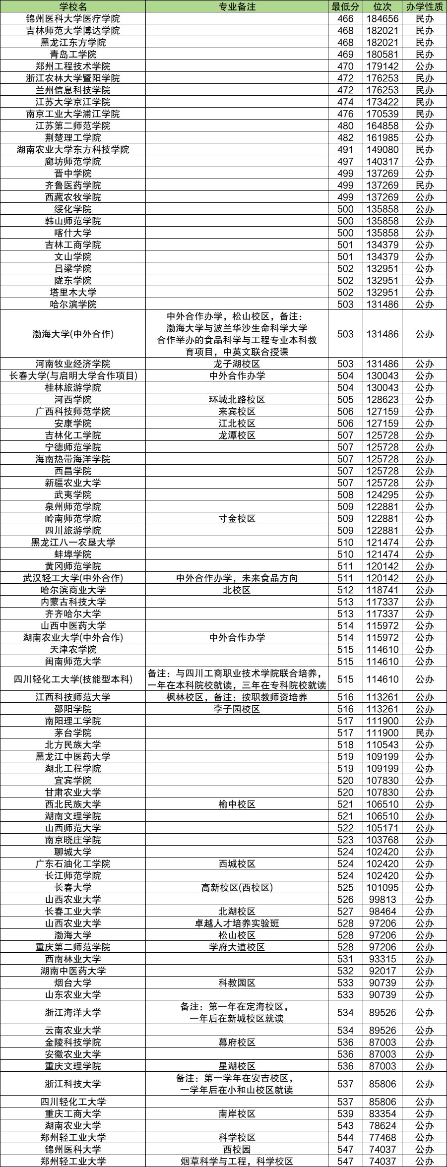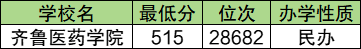 在文科二本招生的食品科学与工程大学有1所,为民办学校。该学校是齐鲁医药学院,2024年最低分515分。