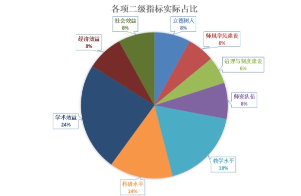 其中学术效益、教学水平和科研水平的权重较大,对39所985高校排名影响较大。以下为具体占比: