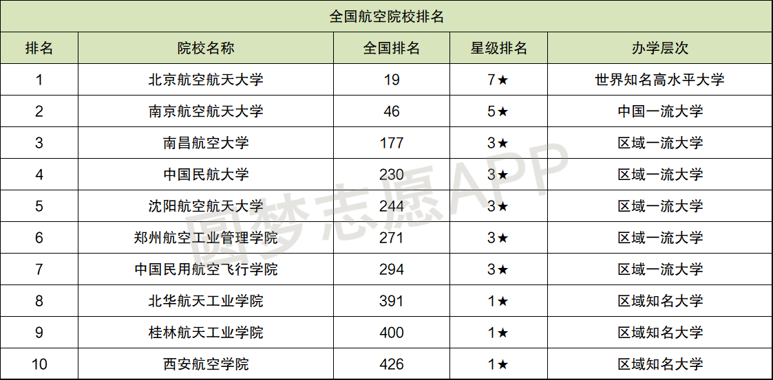 中国目前的除军事外的航空公办本科院校一共只有十所,分别是北京航空航天大学、南京航空航天大学、南昌航空大学、中国民航大学、沈阳航空航天大学、郑州航空工业管理学院、中国民用航空飞行学院、北华航天工业学院、西安航空学院、桂林航天工业学院,这十所院校就是中国排名前十的航空大学,具体排名如下: