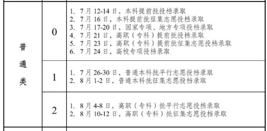 7月16日-28日:本科普通批次院校录取(包含2次征求志愿)。