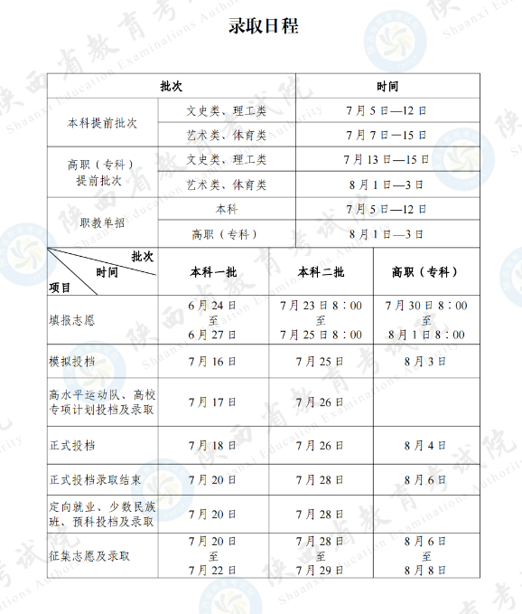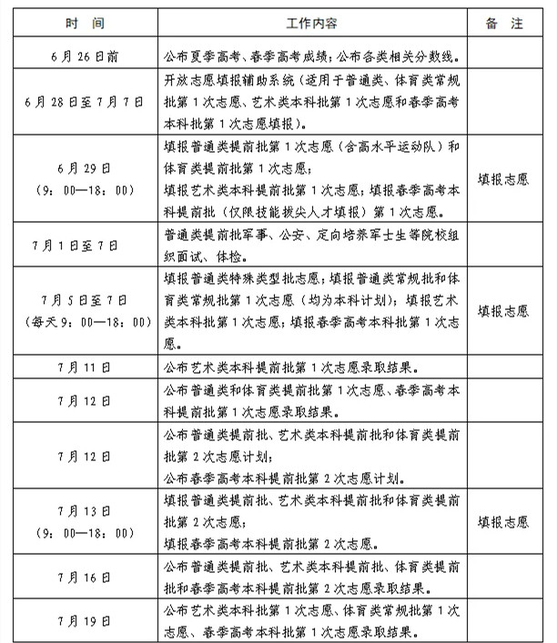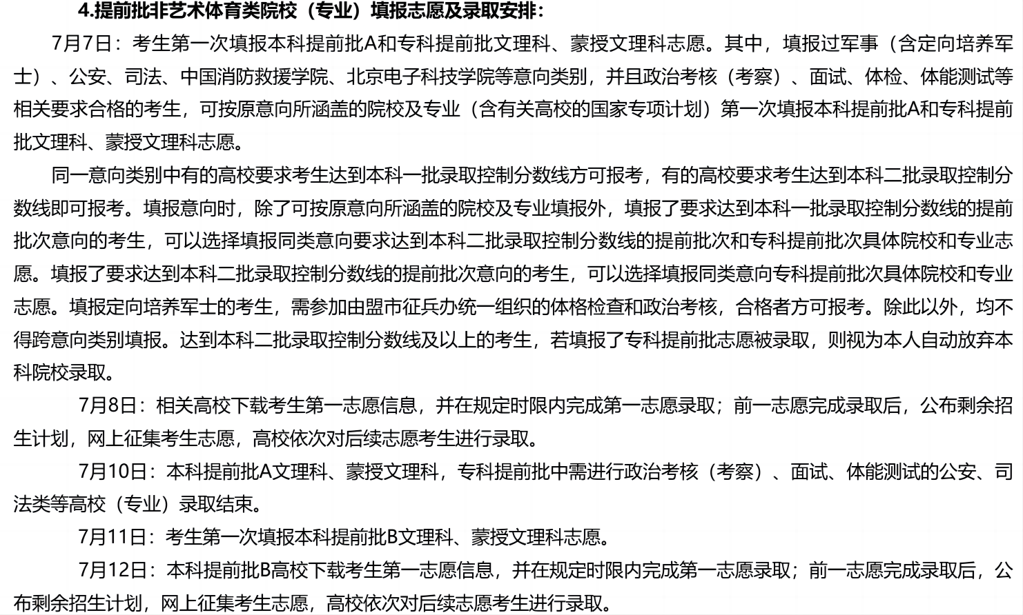 2)提前录取的本科第一批院校录取时间为7月9日至10日。面向脱贫地区专项一批本科院校7月11日至12日录取。