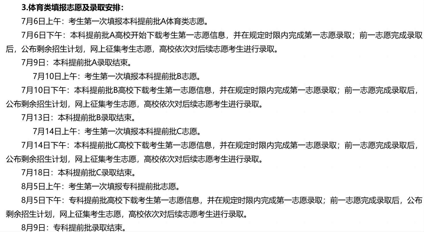 1)提前录取的艺术类、体育类本科院校7月4日至10日录取。