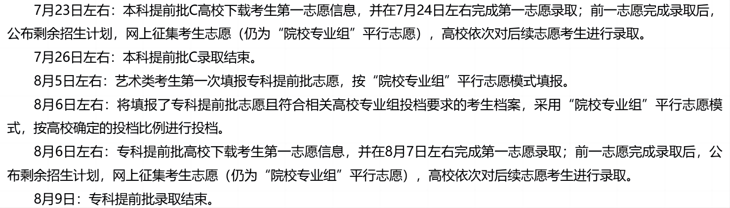 5)高职(专科)提前批院校录取:8月1日至7日。