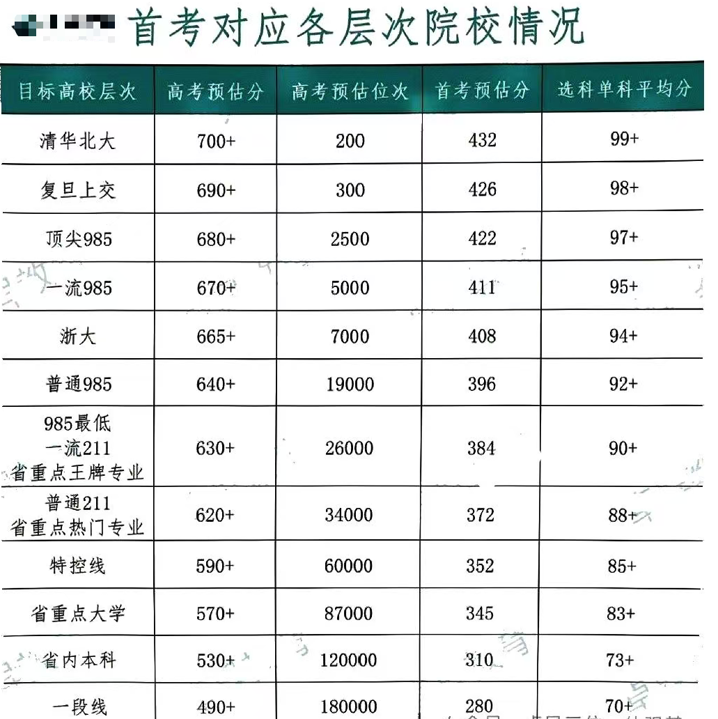 如果各位考生的目标定位是清北、上交、复旦等这类顶尖985高校,那么首考分数一般要达到430分左右。