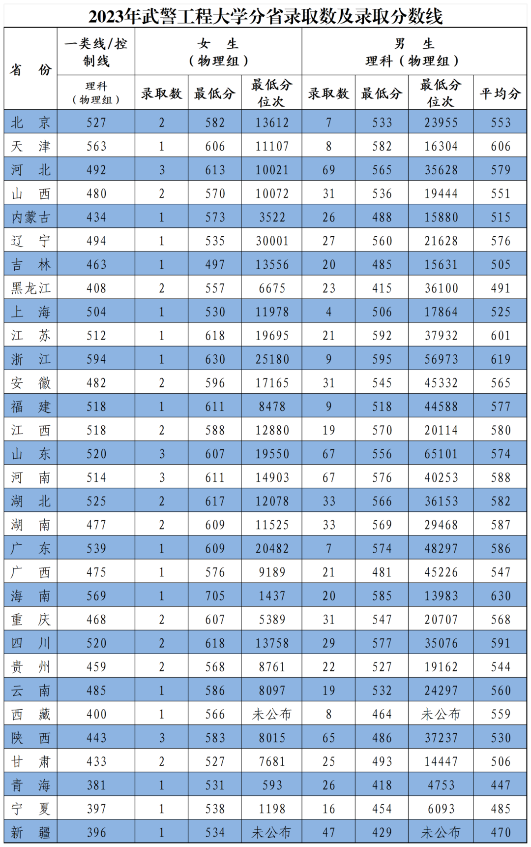 | 武警工程大学 | 物理 | 587 |