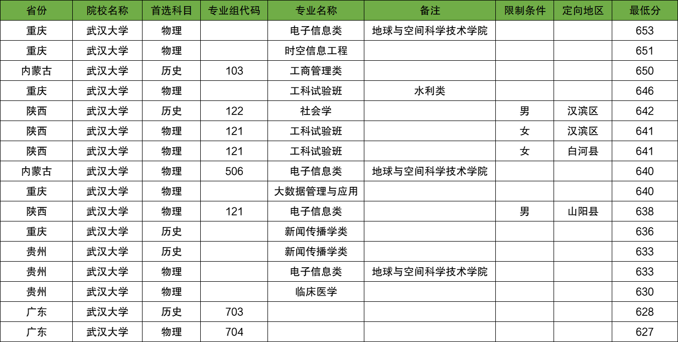 以下为2025年武汉大学部分省份高校专项计划录取分数,暂供参考。