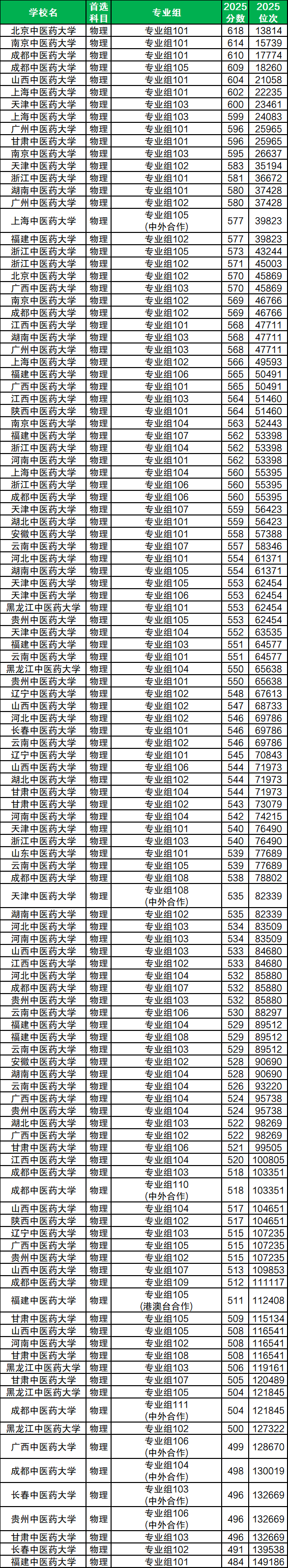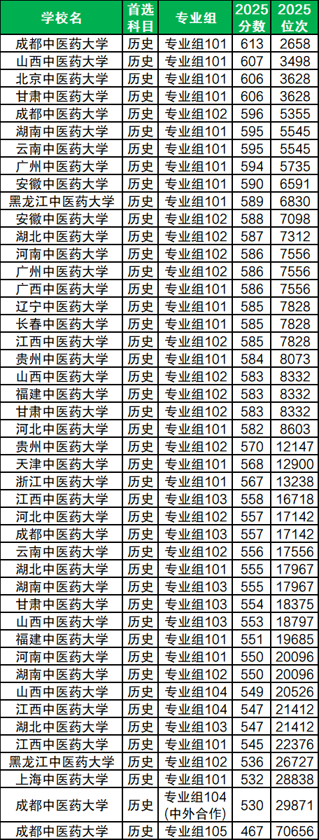 各校在不同省份的录取分数有差异,本文整理的是中医药大学2025年在四川文、理科录取数据。四川是新高考省份,文科对应历史类数据、理科对应物理类数据。