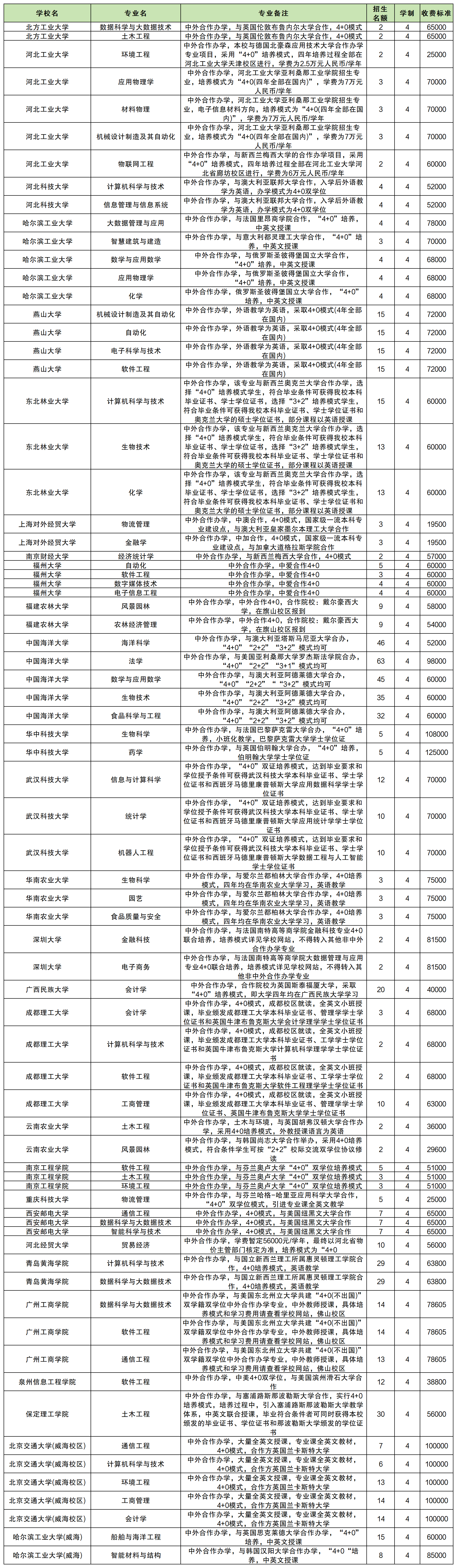 以下是2025年山东省部分4+0中外合作项目学费一览: