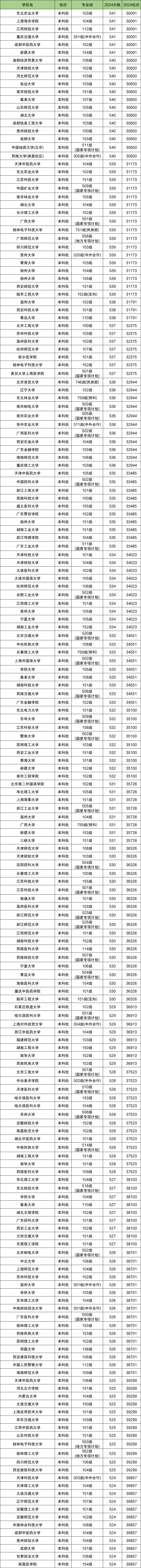 在3万-4万名中有不少省重点大学,如南京财经大学、集美大学、山东师范大学、湖北大学、成都信息工程大学、成都大学、天津中医药大学、江苏科技大学、南京林业大学、长沙理工大学、广西大学、桂林电子科技大学、广西师范大学、四川师范大学等。