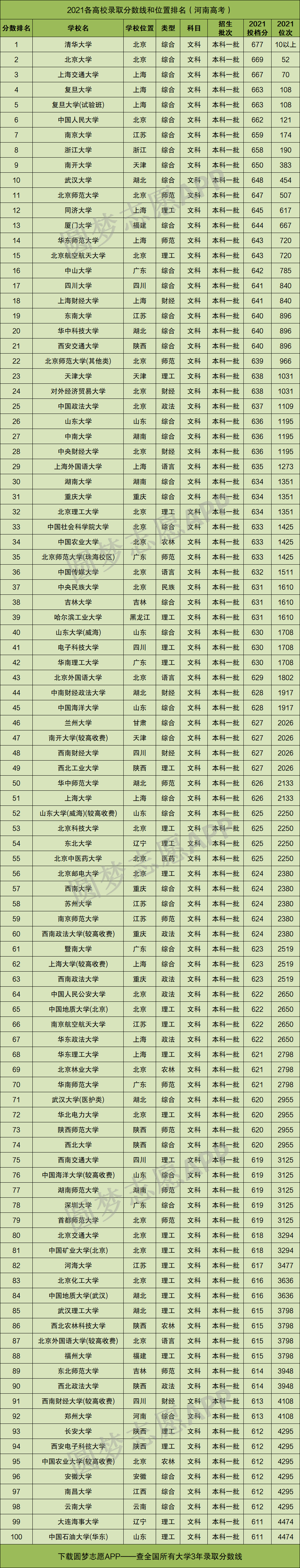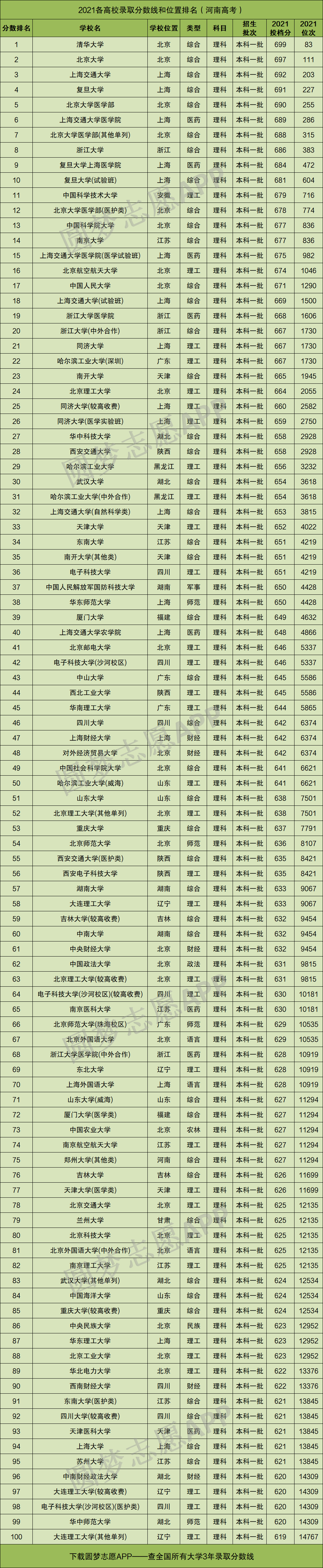 友情提醒:如果你想看全国高校2021年在河南省高考完整版录取分数线排名,并下载其Excel文档,可以在手机应用市场下载圆梦志愿APP获取!