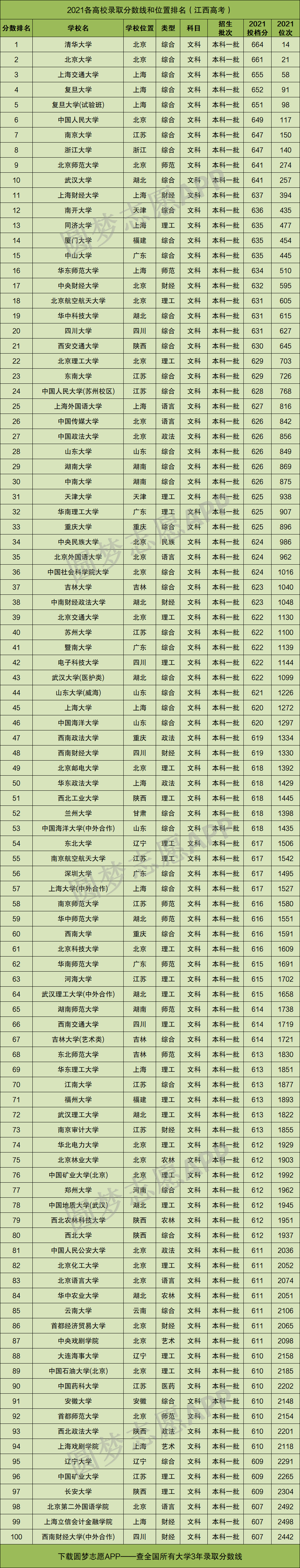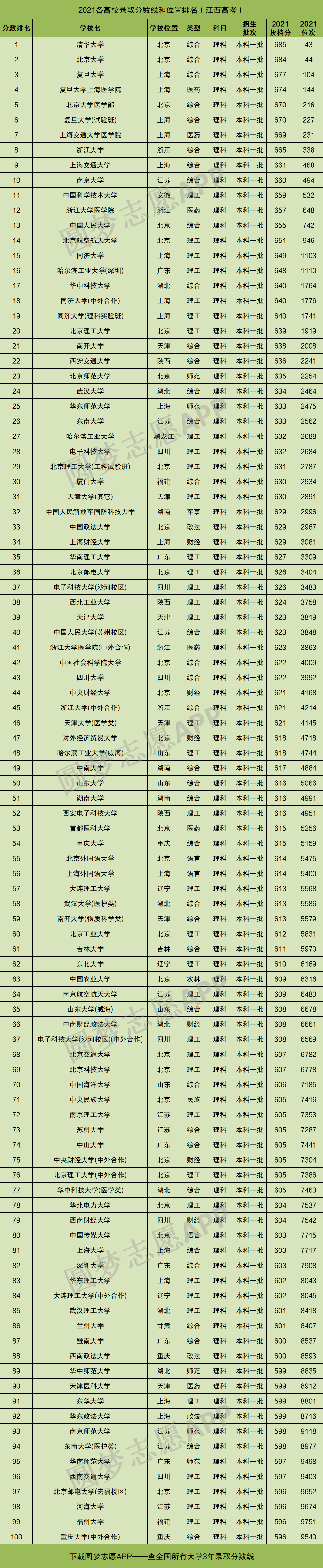 2021各高校在江西录取分数线和位置排名,是接下来这一年里无数江西省高三考生关注的重点。因为不少同学都非常好奇,2021年高考在江西省录取分数线最高的前100强大学是哪些?对于江西省的高考生来说,哪些省份的哪些大学最难考?那么,本文就将为大家奉上答案!
