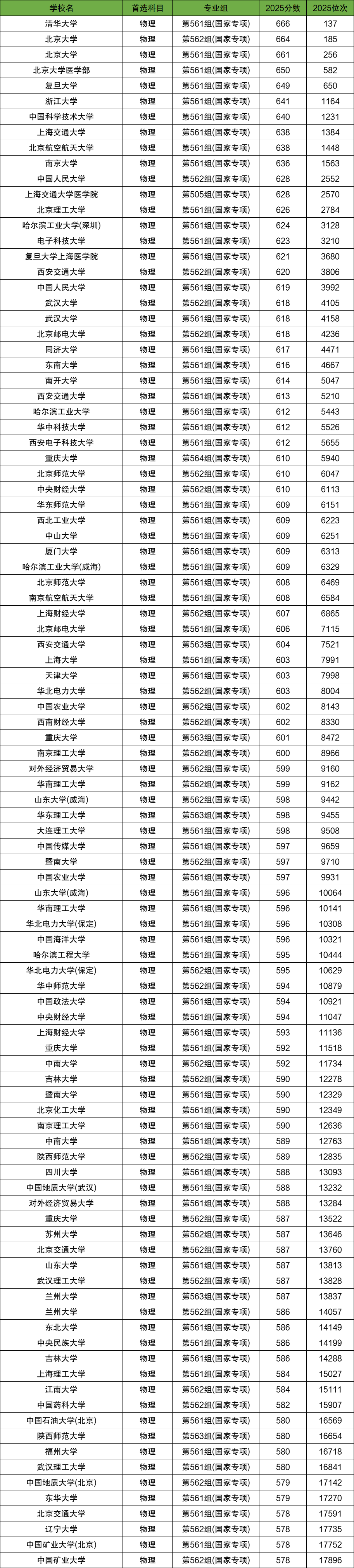 国家专项面向物理类招生的单位有255个,其中分数排名前十的有清华、北大、复旦、浙大、中科大、上交、北航、南大,这些都属于工科实力很强的院校,分数在636-666分之间。
