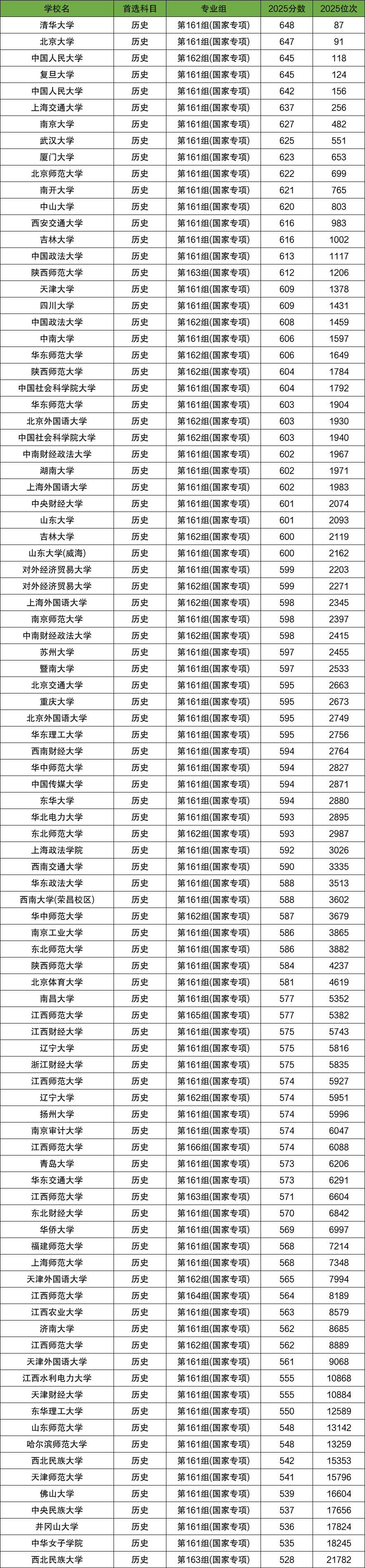 小编在此整理的是2025年国家专项院校在江西物理类(前100名)和历史类的录取分数线,如下: