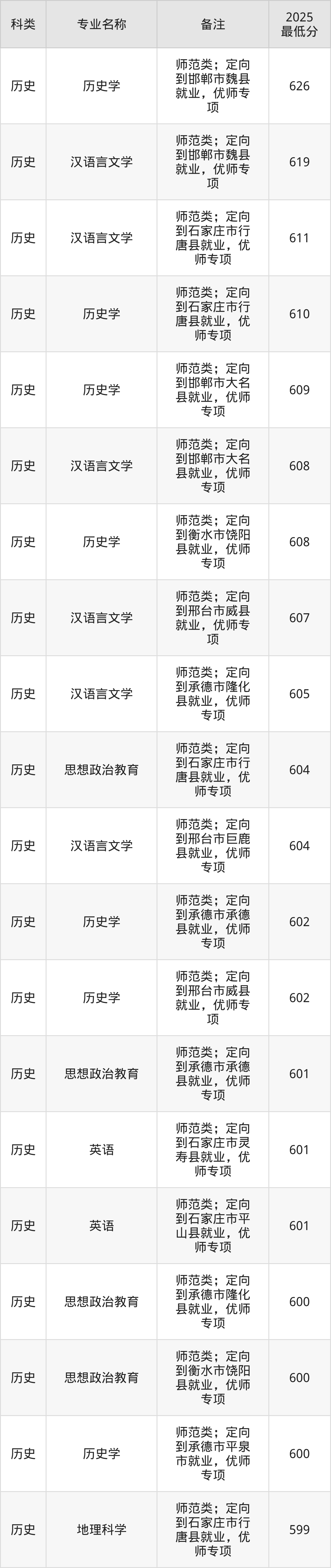 (2)河北师范大学:最低564分-626分