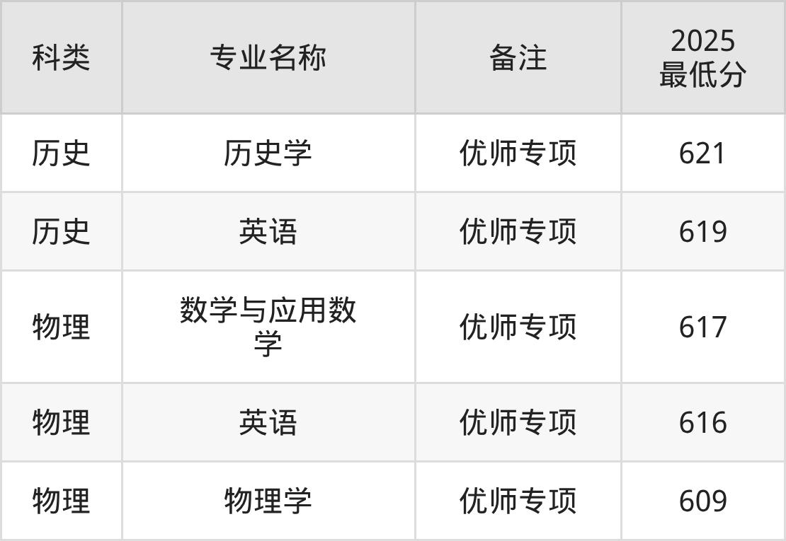 (3)东北师范大学:最低606分-618分