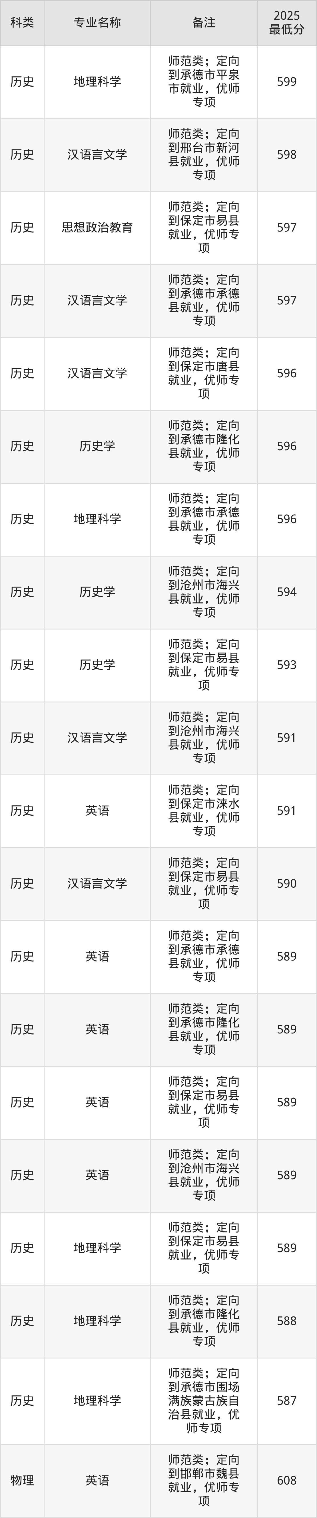 (4)河北民族师范学院:最低559分-608分