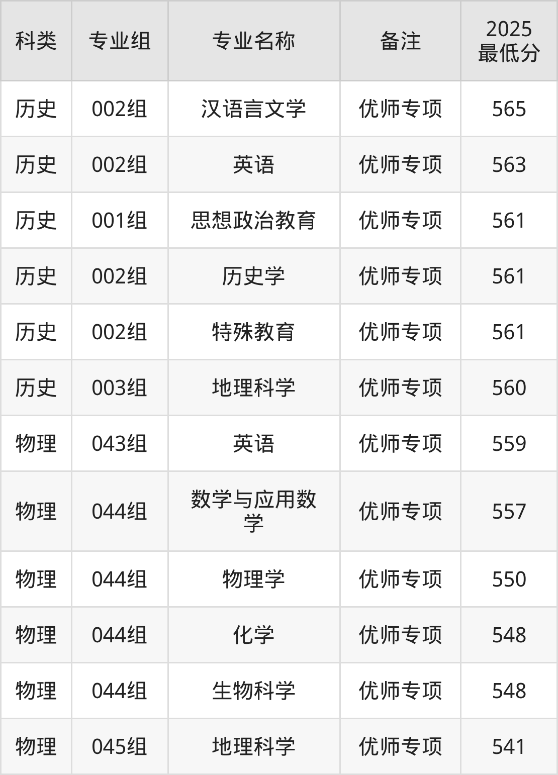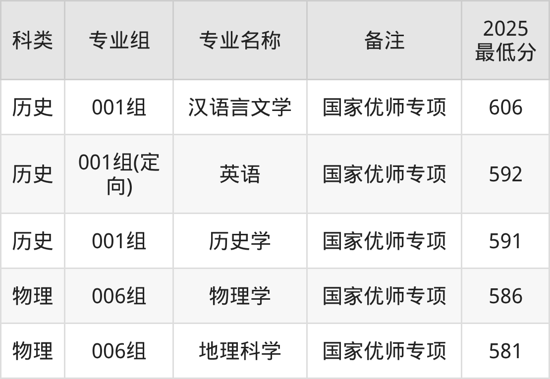 参考2025年招录数据,甘肃优师专项分数线范围在530分-606分之间,其中东北师范大学最低分577分、华东师范大学最低分581分等。