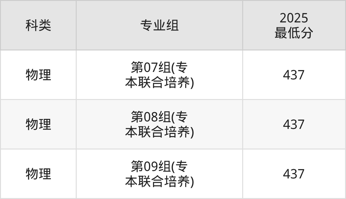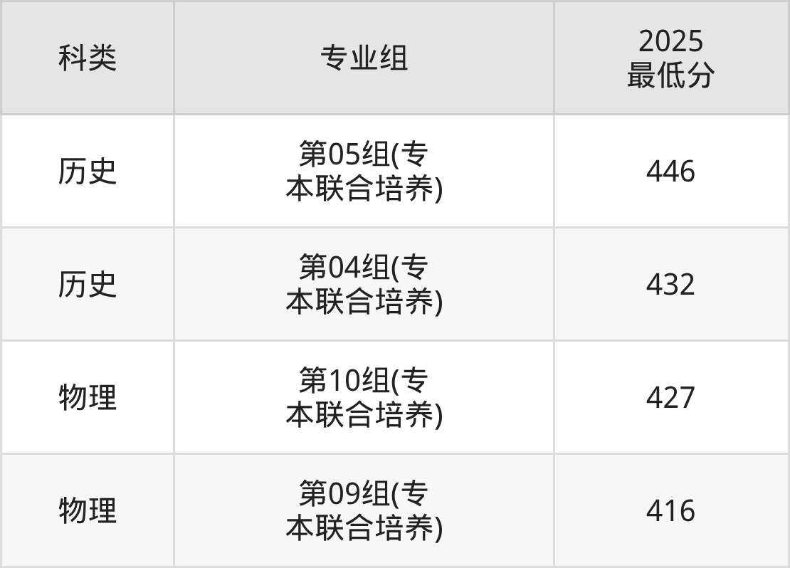 | 学校名 | 批次 | 科类 | 2025 最低分 | 2025 位次 |